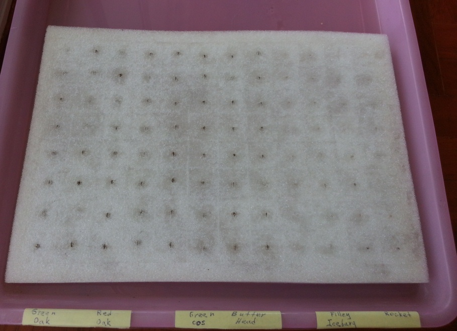 19.03.2013 — прошло ровно десять дней после того как я посадил первые семена! Все салаты кроме Рукколы уже имеют по четыре листика. Рукколы осталось только две… Ежедневные солнечные ванны пришлись ей не по душе, видимо, рукколу надо в тени выращивать… Сегодня, кстати, к нам придут устанавливать гидропонную установку! Послезавтра будем перемещать туда салат.