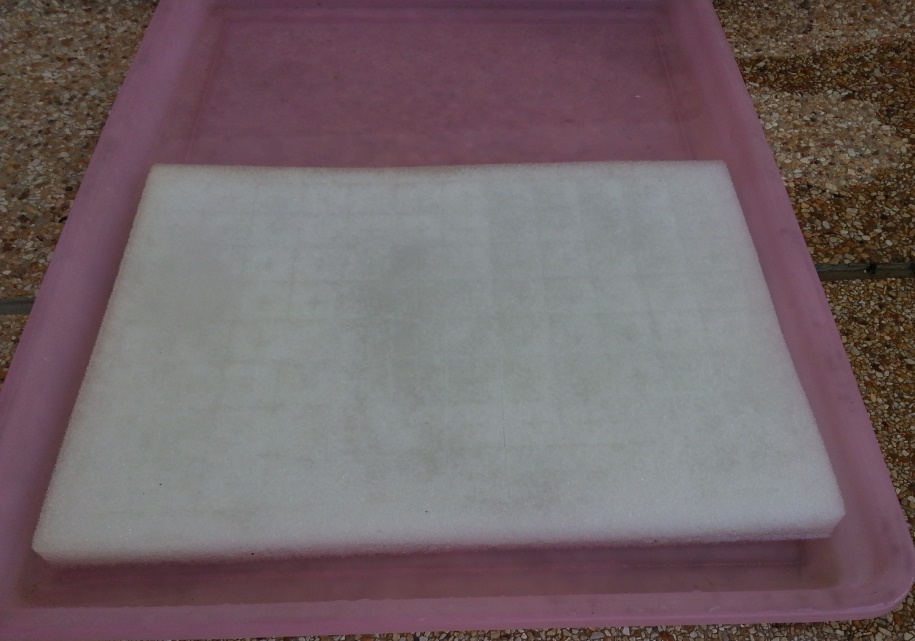 Сделал все по инструкции — промочил хорошенько поролон водой, и поставил с лоток с водой: